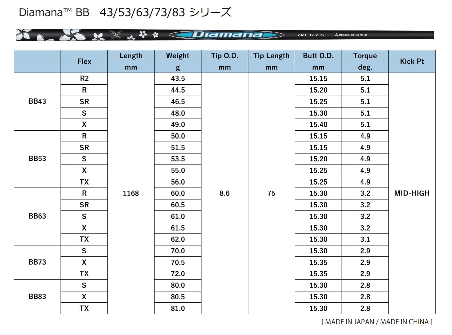 多くのゴルファーの支援をいただき、ディアマナ(Diamana)は立ち上げから20年を迎えることができました。 第六世代ディアマナ(Diamanaシリーズの第二弾となるディアマナ(Diamana) BBシリーズは、 最もクセの無いスタンダードな青系シリーズの最新モデル。