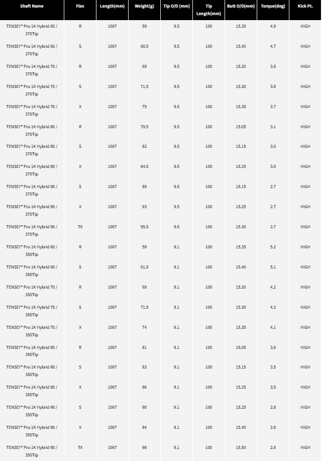 ウッドモデルのテンセイ プロ オレンジ1Kシリーズ、プロホワイト1Kシリーズに続き強弾道のハイブリッド用シャフトを新たにラインナップ。
