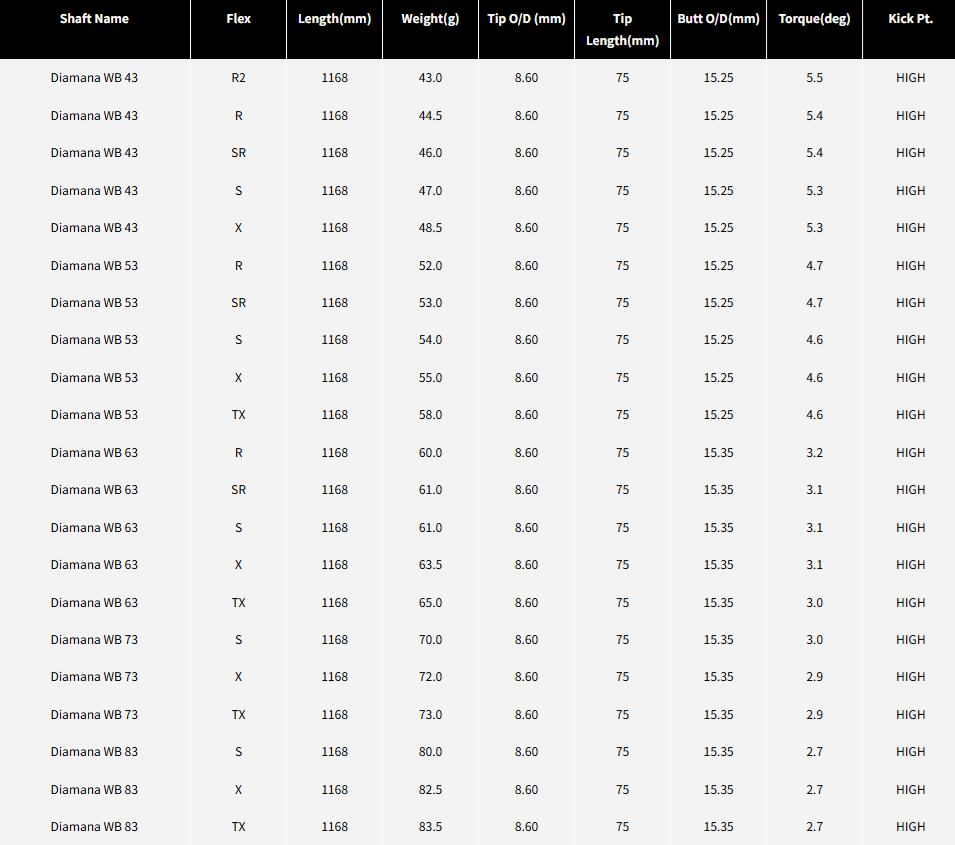 ディアマナWBシリーズはディアマナブランド第6世代の記念すべき一作目となり、元調子に 求められるしっかりとした振り抜きと強弾道を導くシャフト。