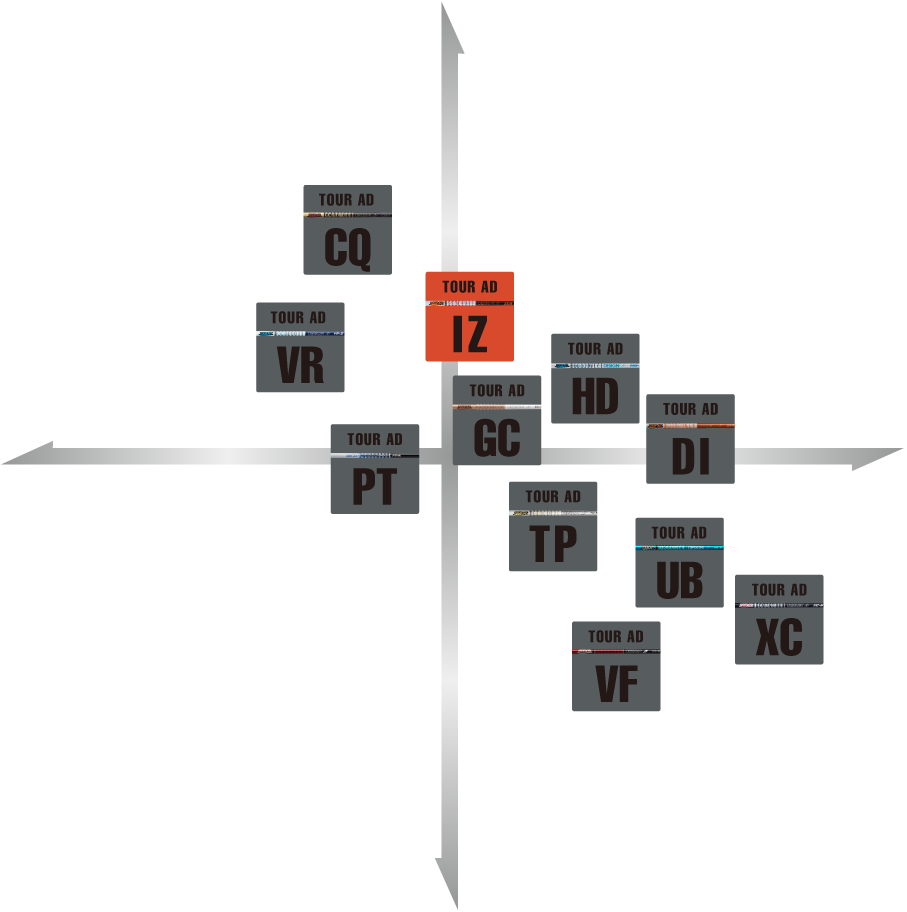 高初速化を狙ったヘッドの進化に合わせて先端部分には高強度素材を使用し、インパクト時のエネルギーロスを最小限に抑えます。中間部分はしなりを感じられるタイミングの取りやすいシャフト挙動。ベースカラーにはTOUR ADシリーズ初となる“マットブラック”を採用し力強さと精悍さをアピールしています。