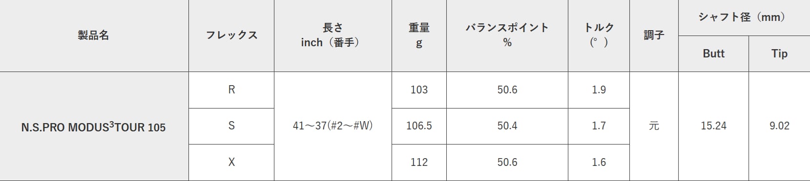 USPGAツアーでは難易度を増すホールセッティングを克服する為に、従来よりも軽量でしかも強弾道・こう操作性・良好なフィーリングを満たすシャフトが求められています。「TOUR105」は、そのトレンドに逸早く対応してツアーライトウエイト仕様を採用。