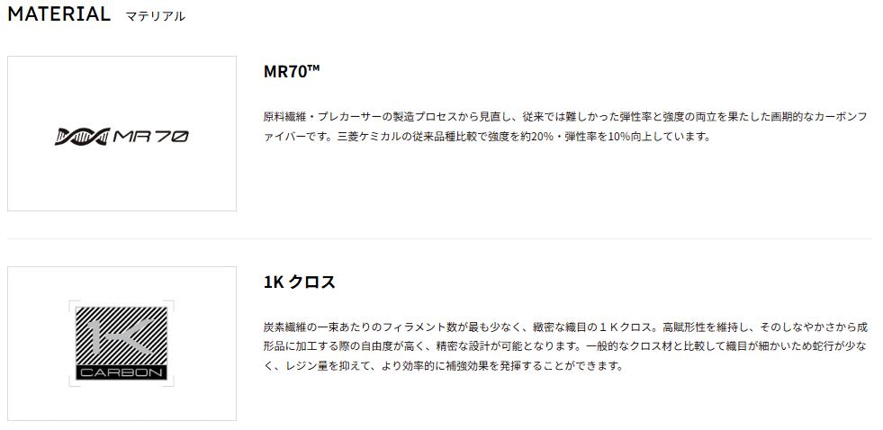 前身のCK(カーボンケブラー)クロスをベースに、三菱ケミカルが独自に開発した1K(ワンケー)クロスを搭載したクセのない全体しなりを特徴とす るシャフトです。