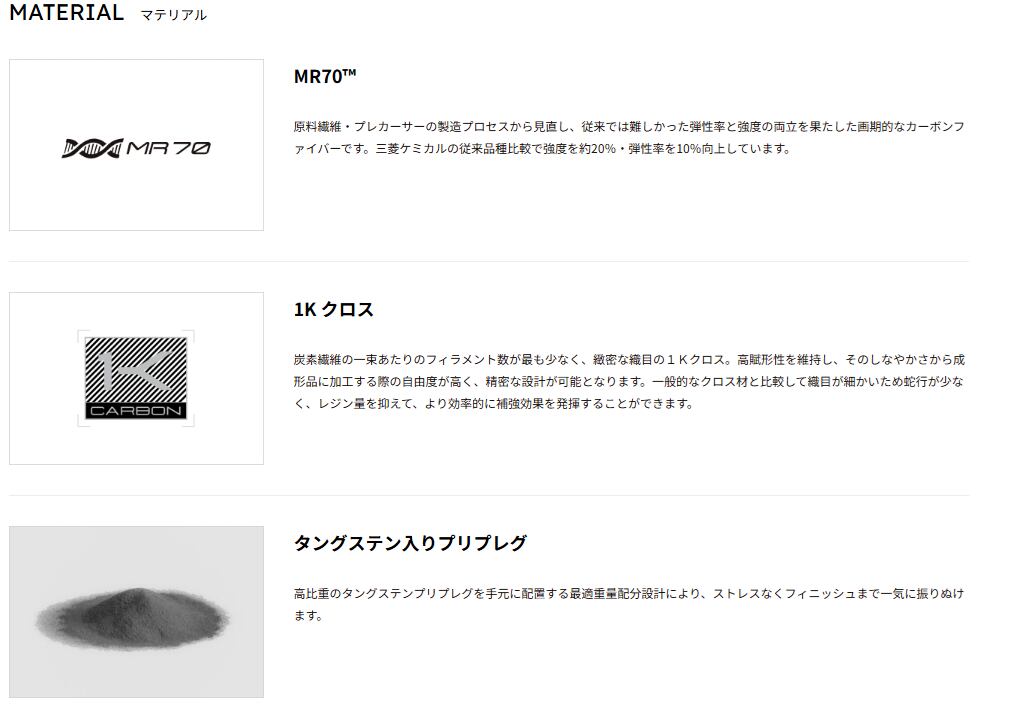 カウンターバランス設計の振り抜きやすさはそ のままに、マトリクス樹脂*の組成・構造を最適化するXlink Tech(クロスリンクテック)を採用することで、選び抜かれた炭素繊維のポテンシャルを最大限引きだしています。